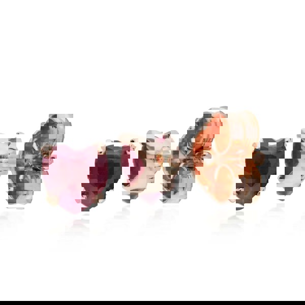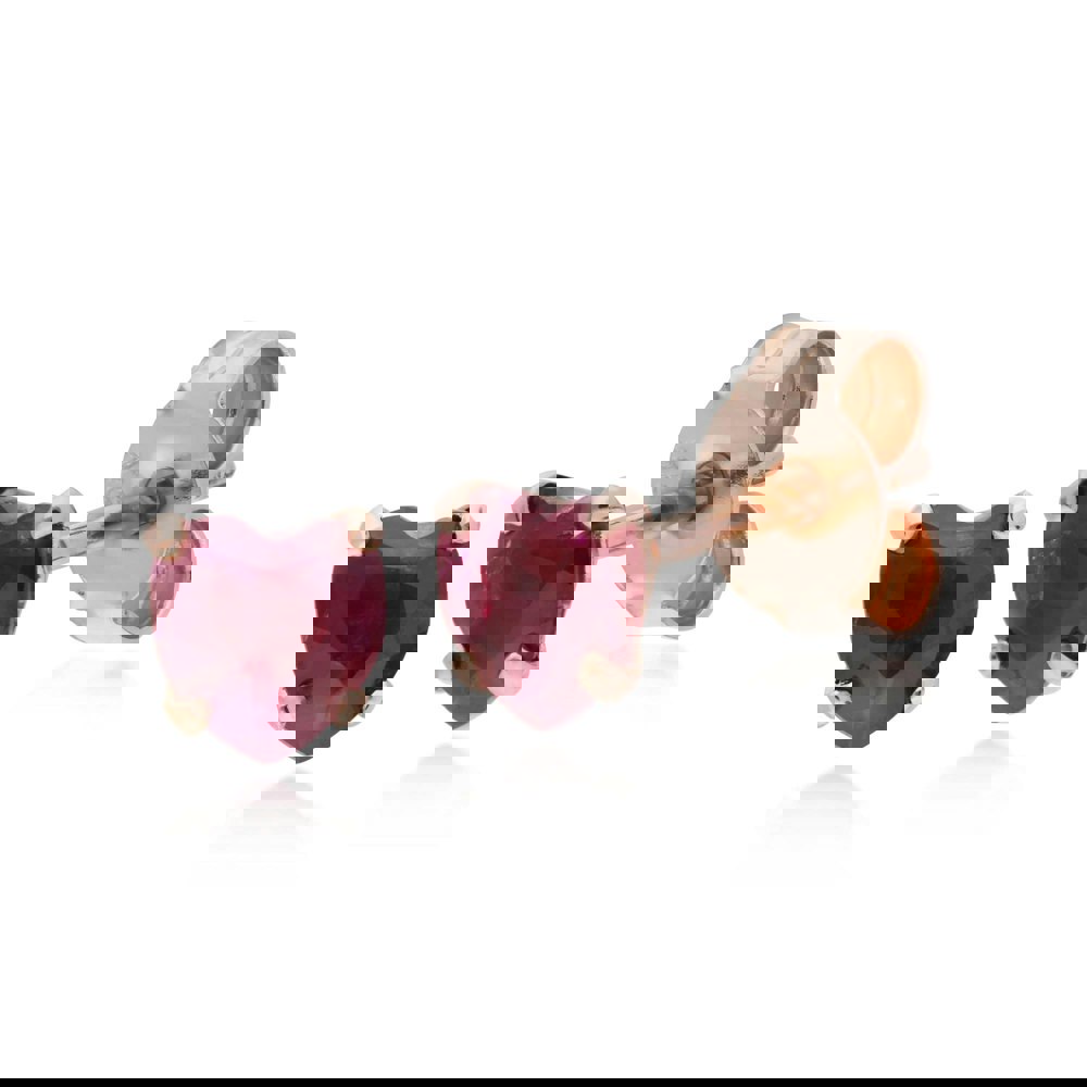 Classic heart design stud earrings crafted from 9ct rose gold and set with a heart cut faceted ruby gemstone