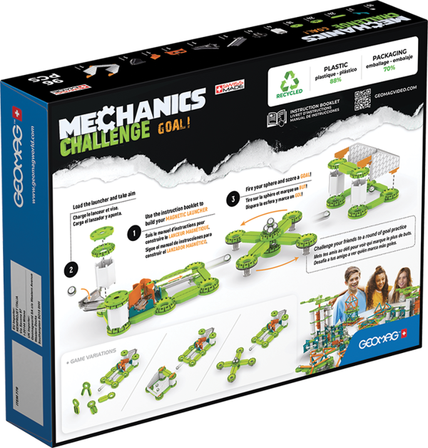 Take on a test of skill with the Geomag Mechanics Challenge Goal 96 Pieces set. This engaging construction kit invites players to build their own magnetic cannon and target goal, then compete to score. Precision, timing, and a steady hand are crucial in this game that cleverly combines the principles of magnetism with mechanical construction. The set provides a fun, interactive way to explore concepts like magnetic fields and chain reactions. It’s a stimulating STEM product designed for one or two players, encouraging friendly competition and developing logic, dexterity, and an understanding of physics.