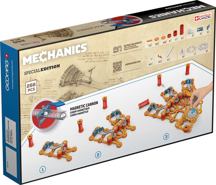 Explore the genius of Leonardo da Vinci with the Geomag Mechanics Leonardo da Vinci Machines Special Edition 286 Pieces set. This advanced construction kit allows builders to recreate some of Leonardo’s incredible inventions, including a Magnetic Cannon and engaging chain reaction mechanisms. Celebrating 500 years of his legacy, this Anniversary Collection set combines the forces of magnetism and mechanical construction to provide a unique and educational building experience. The Geomag Mechanics Leonardo da Vinci Machines Special Edition 286 Pieces set challenges young engineers to discover fundamental principles of physics, engineering, and problem-solving as they assemble complex models. It’s an exceptional way to stimulate an interest in science and history through hands-on play.