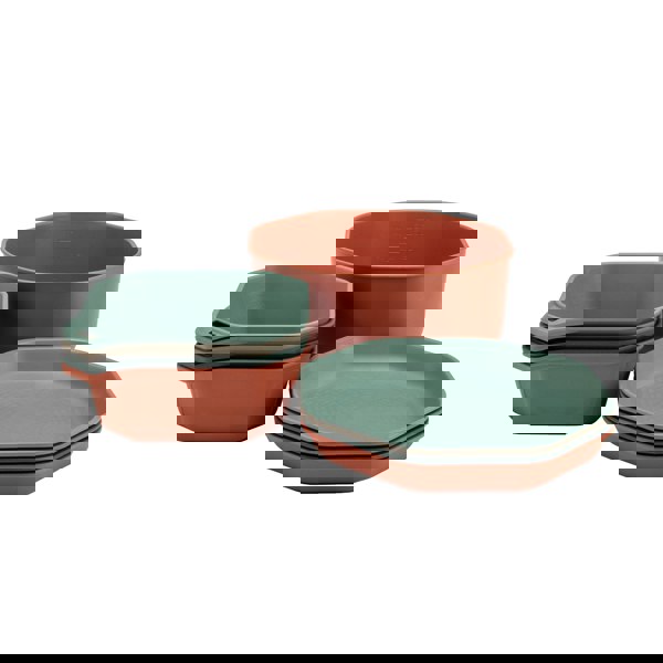 Dine out(side) with the packable 9-piece ComplEAT Tableware Set. Four bowls, four plates, and a 10-cup mixing bowl come together to handle everything from meal preparation to feeding the whole crew. This camping dinnerware set was designed with hungry campers in mind and doesn’t compromise on size, function or durability. When mealtime is over, everything nests together.
