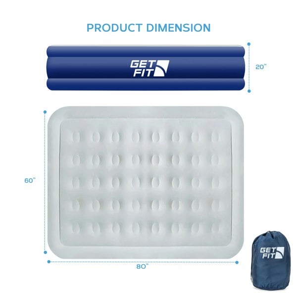 Compact Design: Thanks to its compact and easy-to-use design, the Get Fit Air Bed is a hassle-free product to set up for your guests, take on a camping trip, move to your dorm, or use at home. Do you struggle to find enough space for your houseguests? An air bed is a versatile and portable option for all kinds of circumstances, turning any space into a comfortable extra bedroom. The Get Fit also includes a convenient carrying bag for easy packing and transportation making it travel-friendly.