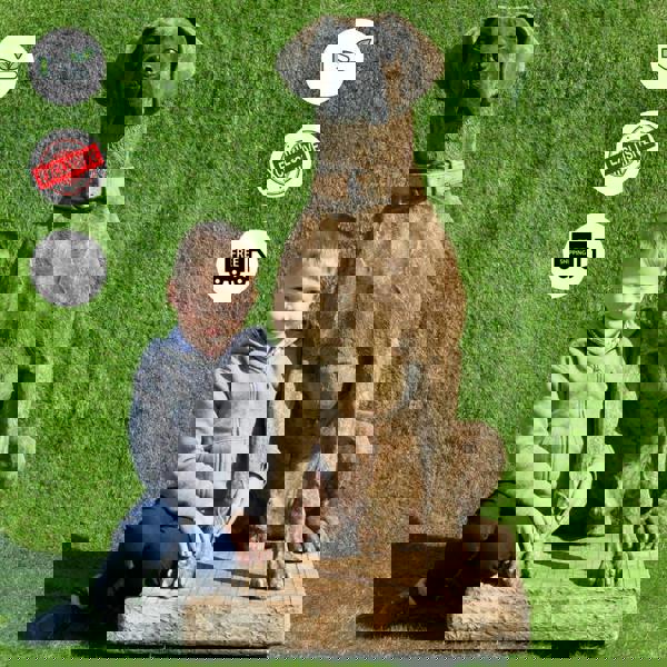 The most fantastic life size Great Dane statue you will ever see - a British design and totally British made. This amazing statue will be the envy of all who see it, great for indoor décor and as an outdoor garden ornament. The giant dog statue in exceptional quality, handmade and painted by skilled craftsmen. Extremely limited production only for DGS. Painstakingly hand dyed for a permanent colouring (not painted and therefore it will not flake). As each dog is hand dyed the colour may vary to that shown. Beautiful attention to every detail. A 'Must Have' for any Great Dane lover that will be genuinely admired for many years to come. This is a very large stone statue; the pictures do not do the grand scale of the design justice. Perfect for any outdoor patio or indoor décor.