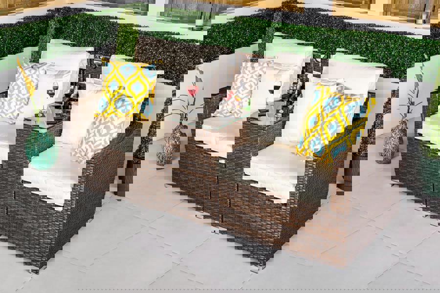 Designed for relaxed outdoor lounging and casual entertaining, the Havana 2-seater outdoor sofa set offers a refined and space-efficient seating solution for gardens, patios and terraces. The set includes two generously sized sofa seats with a modular central drinks cooler table positioned neatly between them, combining comfort, practicality and contemporary outdoor style.