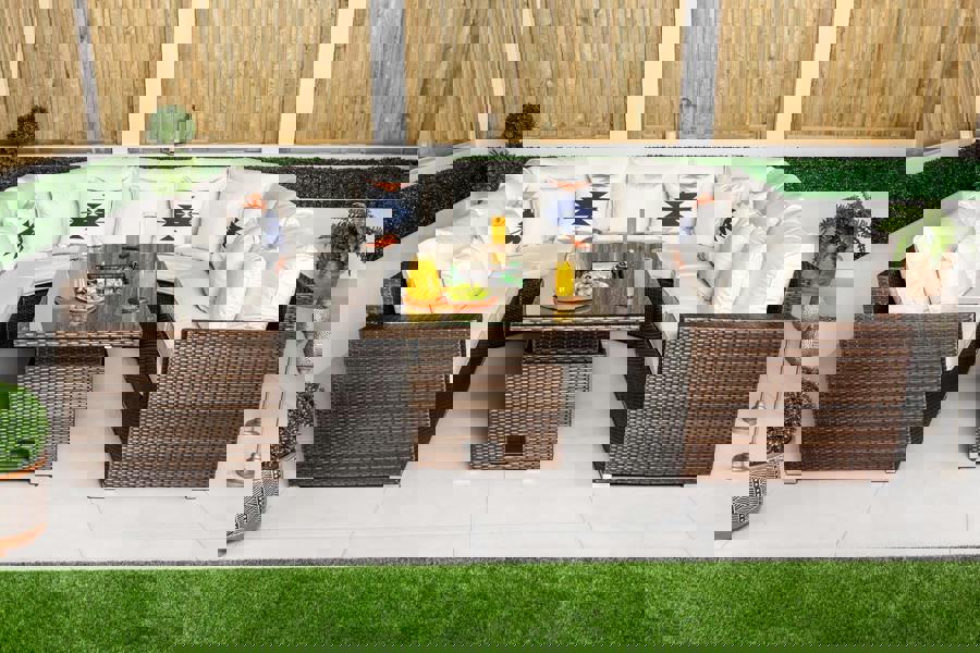 Create a stylish and sociable outdoor living space with the Santorini Luxury U-Shaped Rattan Sofa Set. Designed as an impressive centrepiece for contemporary gardens and patios, this spacious set combines modern design, generous seating and practical features—perfect for entertaining, relaxing or enjoying time outdoors with family and friends.