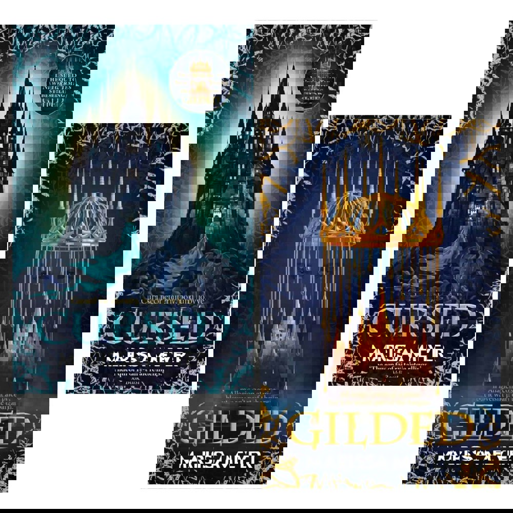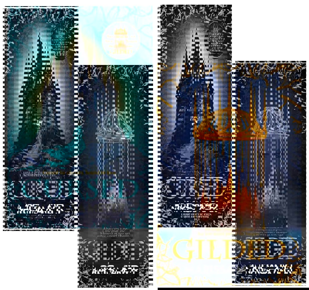 Gilded and Cursed by Marissa Meyer are brought together in this two-book duology. Set in a world where magic carries a cost, the story follows Serilda, a miller’s daughter whose gift for storytelling is shaped by a curse from the god of lies. When one of her tales attracts the attention of the Erlking, she is drawn into an enchanted realm of castles, curses and dangerous bargains.