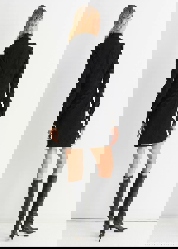 Effortlessly chic and versatile, our Black Corduroy Mini Shirt Dress is a must-have addition to your wardrobe. Crafted from soft corduroy fabric, it features a trendy mini length and classic shirt dress design. Perfect for any occasion, this dress will keep you looking stylish and on-trend.