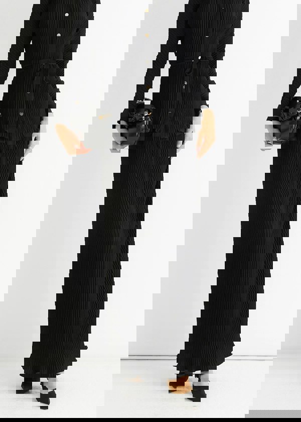 This Black Plisse Maxi Skirt features a comfortable elasticated waist for an easy fit and a flowing silhouette that moves with you. Its textured plisse fabric adds subtle dimension, making it a bold yet effortless choice for casual days or relaxed evenings. Pair it with your favorite tops for a versatile, stylish look that keeps comfort front and center.