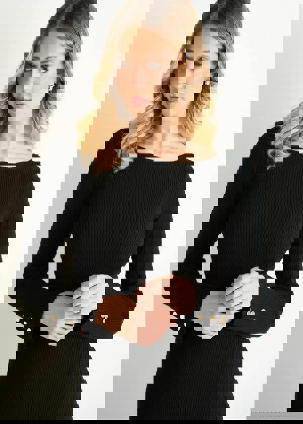 - Black knitted dress with a flattering silhouette