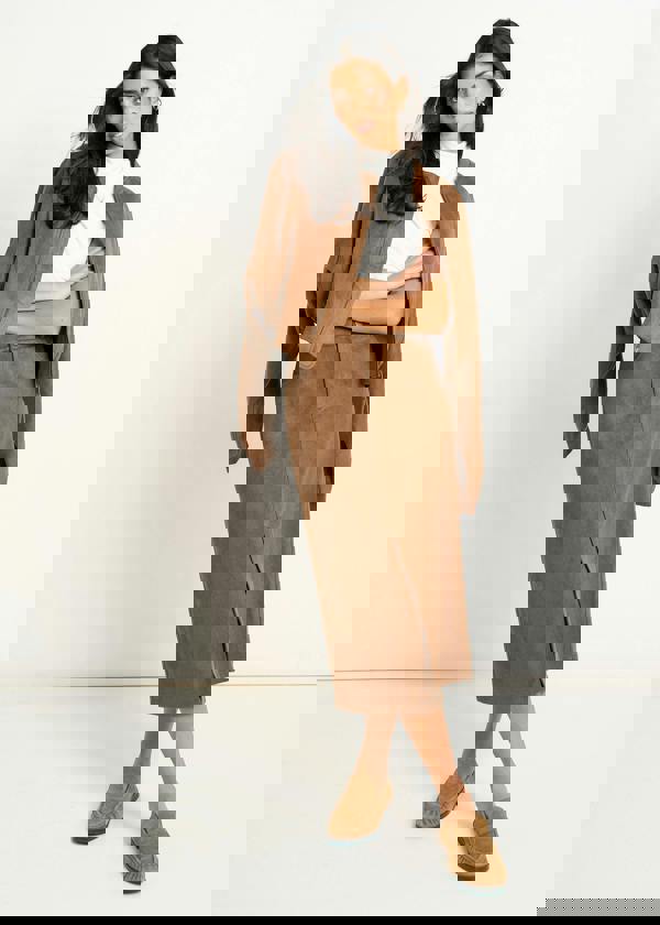 Make a statement with this bold Brown Suede Puff Ball Jacket. Structured yet surprisingly comfortable, the voluminous silhouette adds instant attitude to any outfit while the soft suede keeps things luxe. Layer it over dresses, knitwear, or simple basics for a look that commands attention. The cropped proportions work beautifully with high-waisted trousers or midi skirts, creating flattering proportions. Perfect for those who aren't afraid to stand out—this is the jacket that transforms an ordinary day into something memorable. Invest in a piece that's equal parts confidence and comfort.