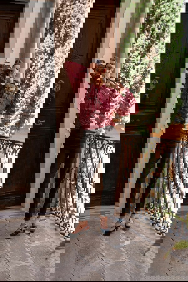 This Burgundy Animal Lace Neck Tie Detail Blouse offers a bold yet comfortable style with its rich burgundy hue and eye-catching animal print. The delicate lace and adjustable neck tie add a touch of elegance while keeping the look casual and easy to wear. Ideal for making a confident statement in everyday settings, it pairs well with your favorite jeans or relaxed trousers.
