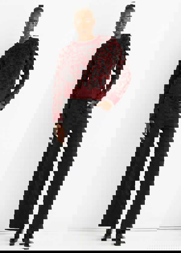 Stay warm and fashionable this season with our Burgundy Contrast Piping Animal Knit Jumper. Made with a cozy knit fabric, this jumper features a bold burgundy color and contrast piping for a touch of style. Perfect for casual and comfortable days.