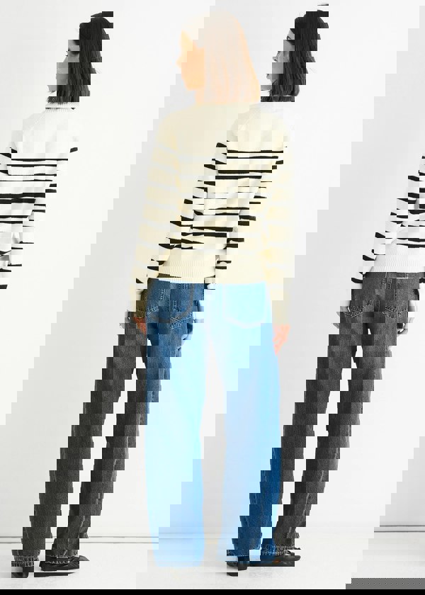 The Cream Recycle Stripe Button Up Loose Fit Knit Jumper offers a relaxed, comfortable fit with a bold striped design. Crafted from soft knit fabric, it’s perfect for casual days, while the button-up front adds versatility for layering. A stylish and cozy addition to your wardrobe.