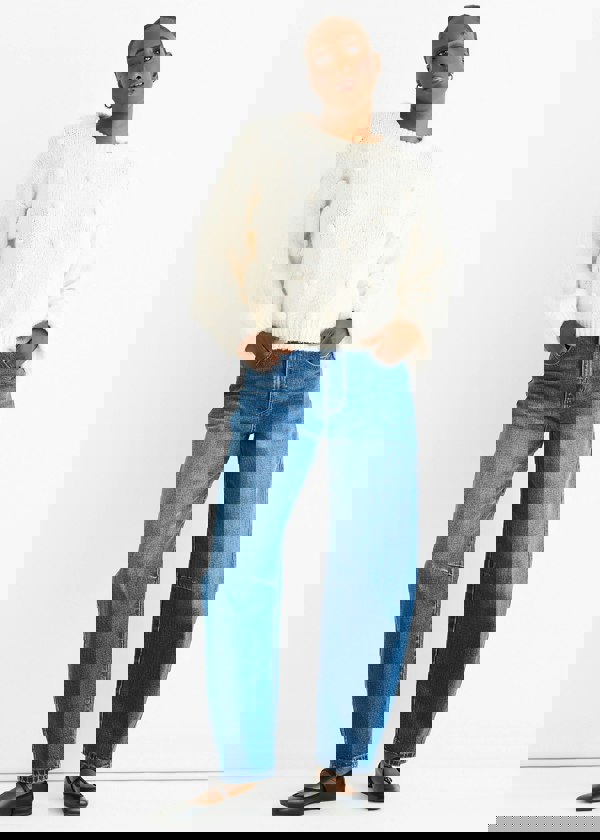 Stay cozy yet stylish in our Cream Wool Mix Oversized Knit Jumper. Made with a comfortable wool mix, our jumper is perfect for a casual and bold look. The oversized fit adds a touch of comfort and versatility to your wardrobe. Stay warm and fashionable with our must-have knit jumper.