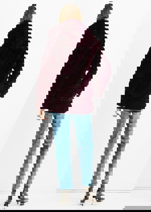 This Dark Burgundy Horizontal Cut Fur Hooded Jacket offers a bold and stylish look with its rich color and unique horizontal cut design. The soft fur-lined hood adds a layer of cozy comfort, making it perfect for casual wear on cooler days. Stay warm and confident with this comfortable, eye-catching jacket.