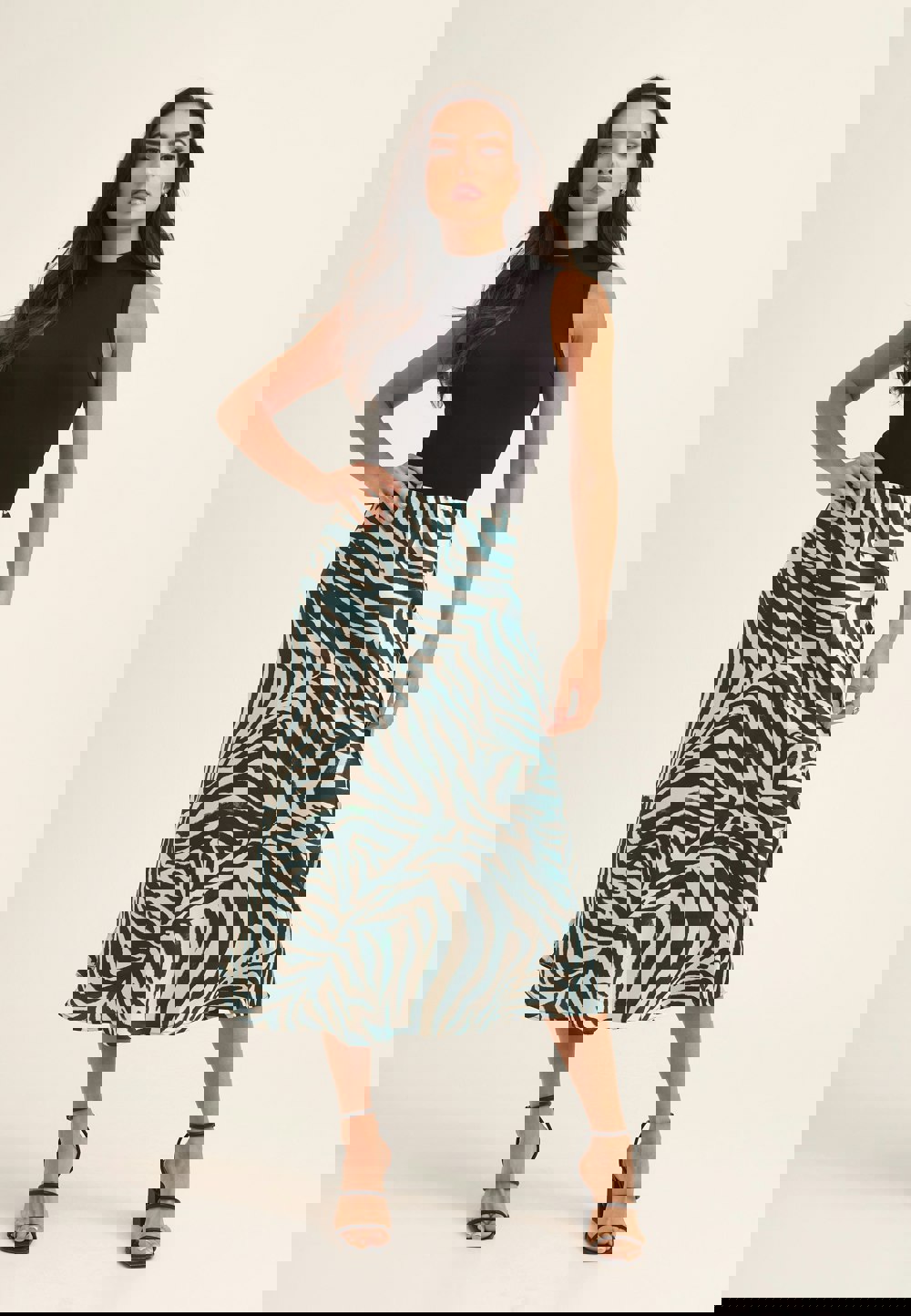 Bring a touch of style to your wardrobe with this green satin midi skirt. Featuring a unique animal print and bias cut for added flair, this skirt is sure to make a statement.