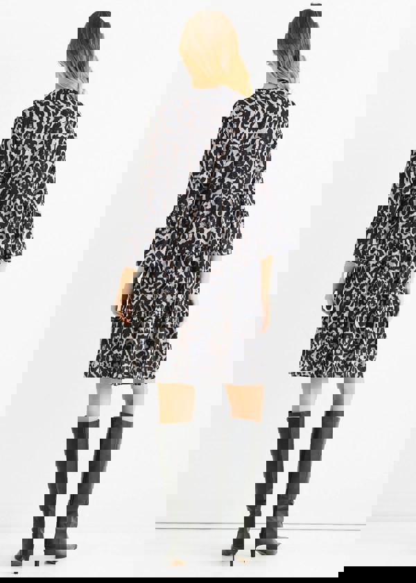 This Grey Animal Print Skater Mini Dress adds a touch of wild print to your casual wardrobe. With a comfortable fit and a flattering skater silhouette, it's perfect for any occasion. Show off your playful side with this dress and stand out in the crowd.