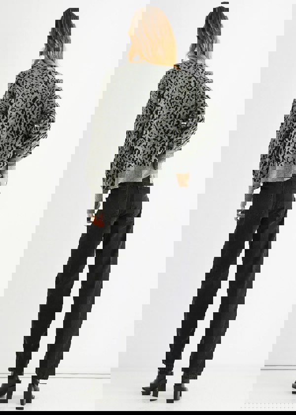 Stay cozy and stylish with this Grey Animal Print Wool Mix Cardigan Look Jumper. Crafted from a soft wool blend, it offers warmth and comfort for everyday wear. The bold animal print adds a trendy edge, making it perfect for casual outings or relaxed weekends. Easy to layer, this jumper combines comfort with a confident statement look.
