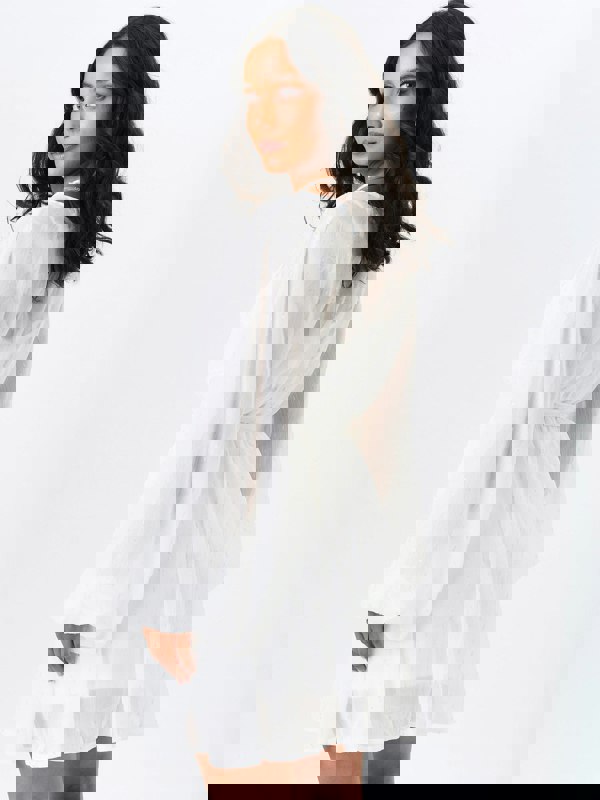 Make a fashion statement in our Ivory Long Sleeve Chiffon Foil Mini Dress. The lightweight chiffon fabric and long sleeves make it perfect for any season, while the foil detailing adds a touch of sophistication. Elevate your style with this trendy mini dress.