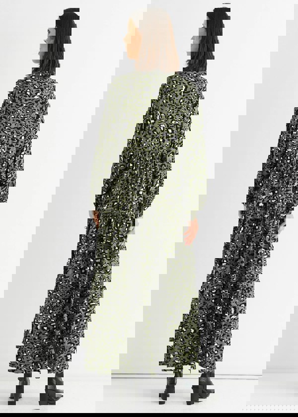 The Khaki Viscose Animal Oversized Smock Maxi Dress combines relaxed comfort with a bold animal print. Its soft viscose fabric and oversized smock design provide effortless movement and a casual, confident look perfect for everyday wear.