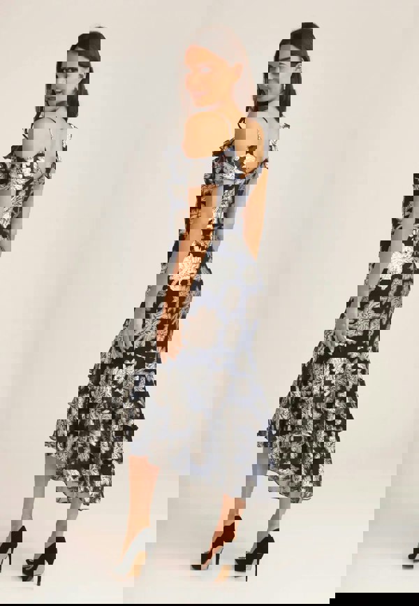 Say hello to this must-have floral ruffle midi dress which is perfect for every occasion. If you have an invitation to your fave doll's wedding then this midi dress ticks all the dress code boxes. With a big floral print, ruffle neckline detailing, how could you say no? Team this midi dress with your heels and your fave accessories for a look that won't go unnoticed.