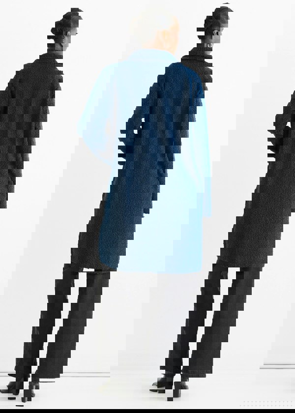 Stay warm and stylish with this Shearling Mid Length Double Breasted Jacket. Designed for comfort, its soft shearling lining keeps you cozy, while the mid-length cut and double-breasted front add a timeless, confident edge. Perfect for casual outings or layering on cooler days, this jacket blends warmth and modern sophistication effortlessly.