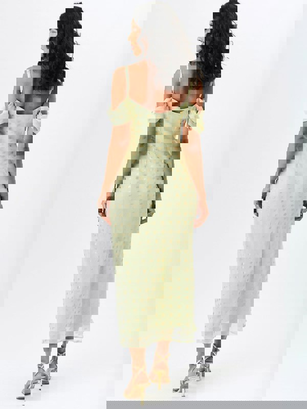 Elevate your fashion game with our stunning Sage Green Cowl Neck Drop Sleeves Foil Maxi Dress. The cowl neck adds a touch of elegance while the drop sleeves provide comfort and style. The foil detailing adds a subtle shimmer, perfect for any special occasion.