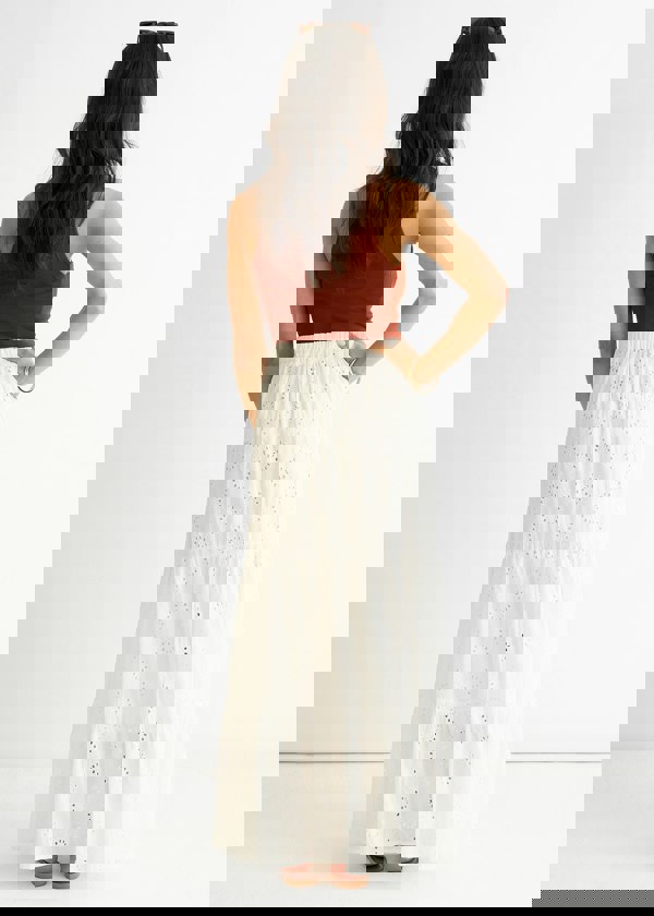 Elevate your fashion game with our White Tiered Lace Embroidered Long Skirt. This beautiful skirt features delicate lace and intricate embroidery, giving it a feminine and elegant touch. Perfect for any occasion, this skirt will add a touch of sophistication to your wardrobe.