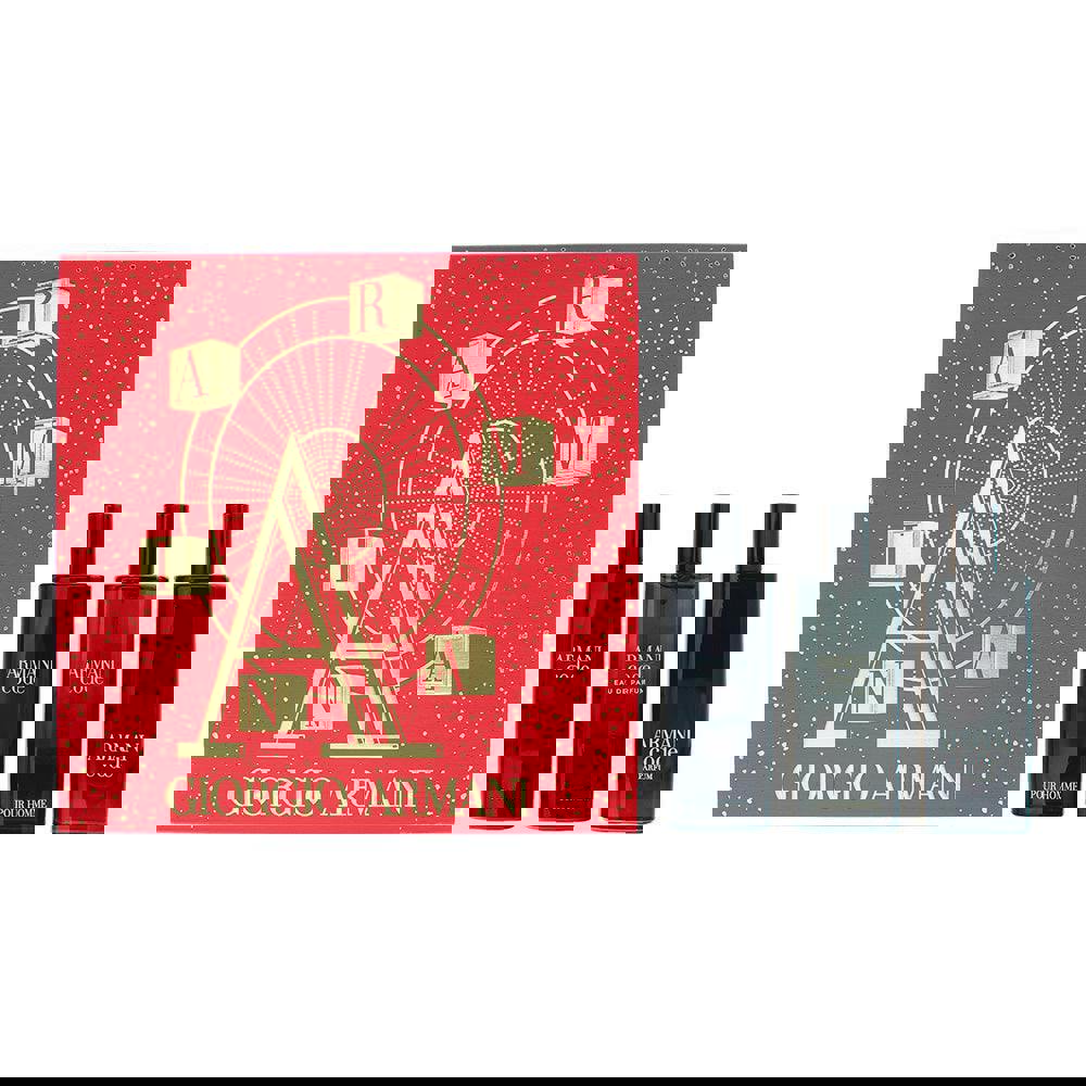 Giorgio Armani Code Pour Homme is presented here as a three-piece gift set, offering a convenient way to experience the signature Armani Code scent in three different concentrations. Designed for men, this collection includes an eau de toilette, an eau de parfum and a parfum, each in a travel-friendly 15ml size.