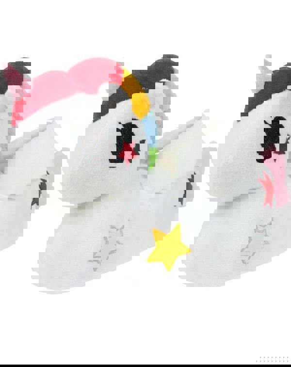 Made with an overall plush material, these slippers have a soft sole complete with a logo print, making the cutest gift for Unicorn fans