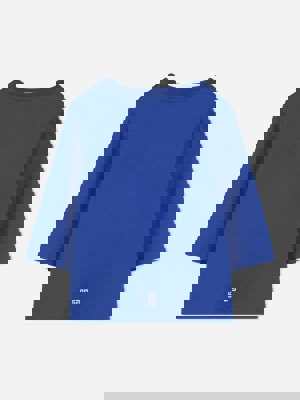 This baby boys long sleeve T-shirt from Givenchy comes in electric blue cotton jersey. A round neck and long sleeves create a clean, simple shape, while shoulder snap fastenings allow for easy dressing. Branding sits at the front with a printed Givenchy logo, finished with a printed 4G detail at the bottom back.