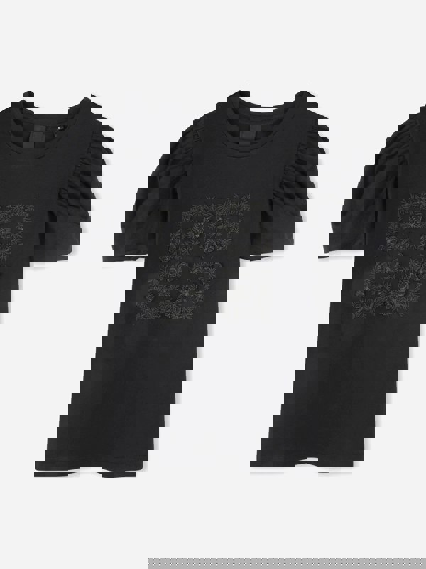 This girls black short sleeve T-shirt from Givenchy is made in organic cotton jersey. Puff sleeves add shape, while the front is detailed with 4G embroidery and embroidered flowers. Givenchy signature embroidery sits at the top of the back.