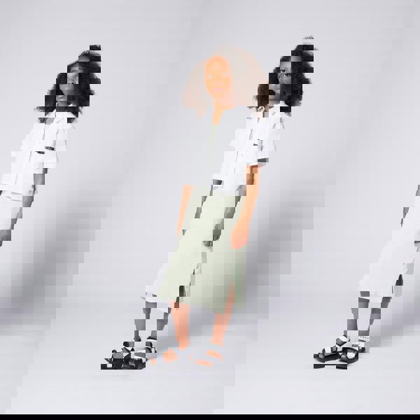 This girls’ canary green dress combines a ribbed finish with Givenchy branding details. The design includes side slits and a 4G metal plate on the front, with Givenchy signature embroidery on the back. Made in a 2x2 rib, it is finished in a tank-dress silhouette.