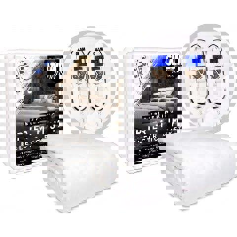 An illuminated, dimmable LCD controller keeps settings clear and simple to adjust, with 9 heat settings and 10 timer settings. Body & Feet Heat Technology lets you warm the body, the feet, or both together. For easy care, the controller detaches so the blanket can be machine washed at 30°C. Safety features include an advanced overheat protection system and automatic safety shut-off, with CE certification and RoHS compliance.