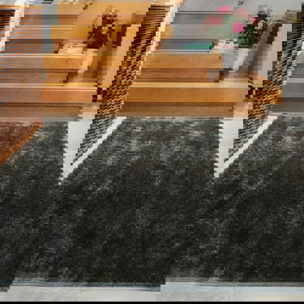 Transform your rooms with the Glamour Shaggy Hand-Tufted Rug in Dark Grey. Its rich, velvety pile offers a plush underfoot experience, while subtle shimmering threads add a hint of sophistication and modern elegance.