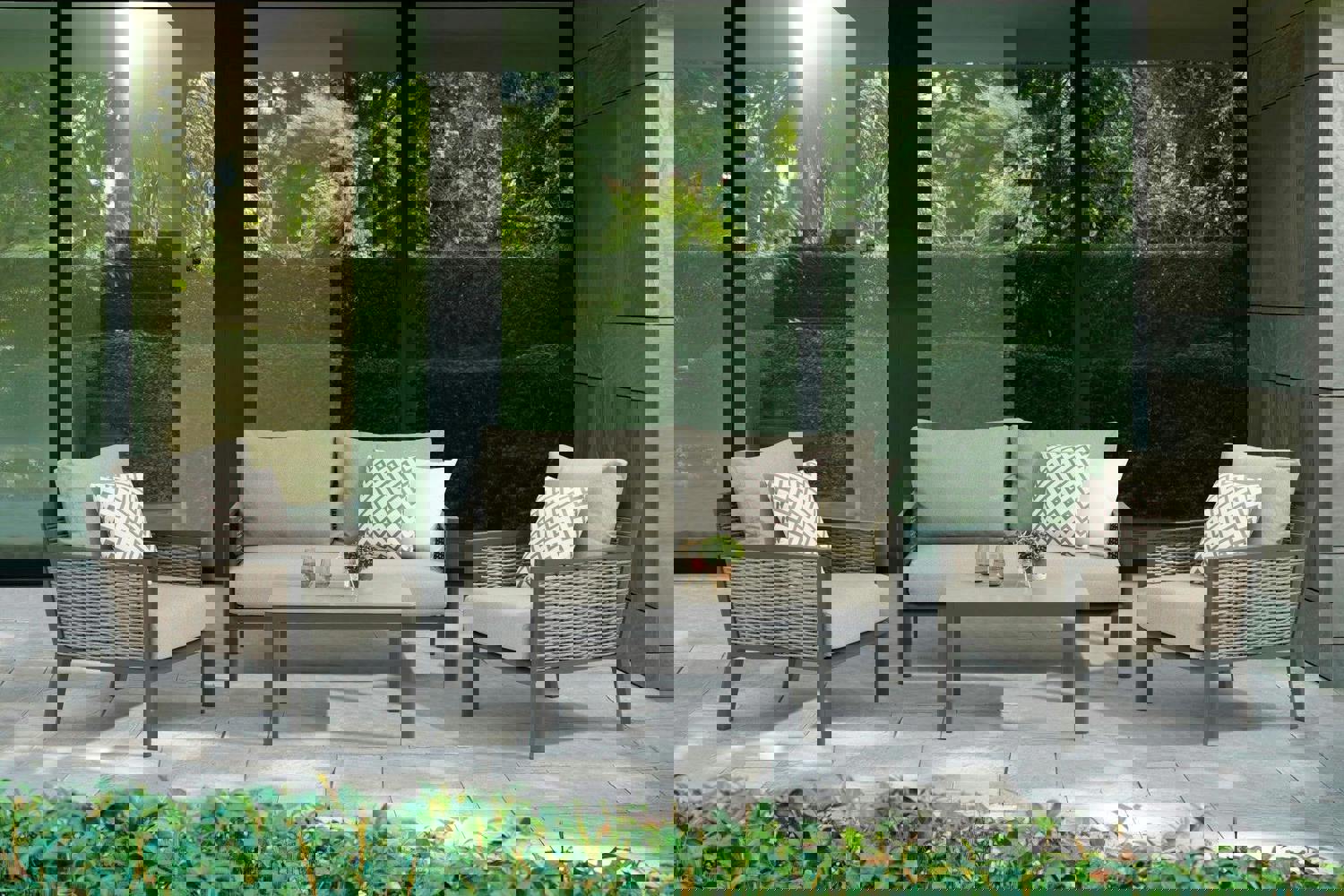 Finished in Sandstone, the Abbey set is paired with soft-touch, season-proof cushions to help you settle in comfortably and stay relaxed for longer. With a coordinating table at the centre, it creates a practical space for everyday entertaining while keeping your outdoor seating feeling inviting and put-together.