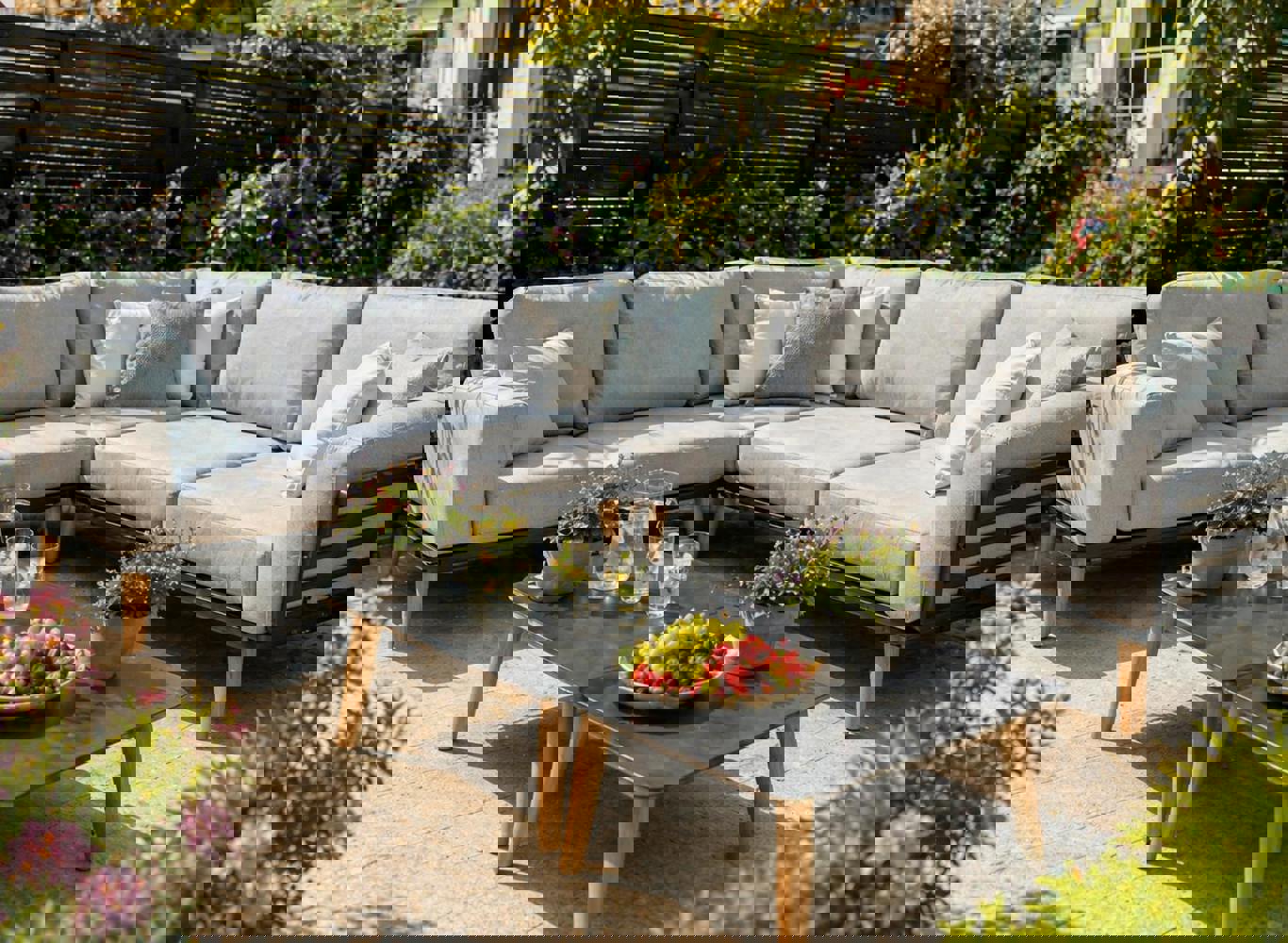 Designed for relaxed outdoor lounging, the Glendale Ascoli L-Shaped Corner Sofa with 2 Side Tables brings a clean, contemporary look to your garden or patio. With its generous corner layout and deep cushions, it creates an inviting space for stretching out solo or gathering with family and friends.