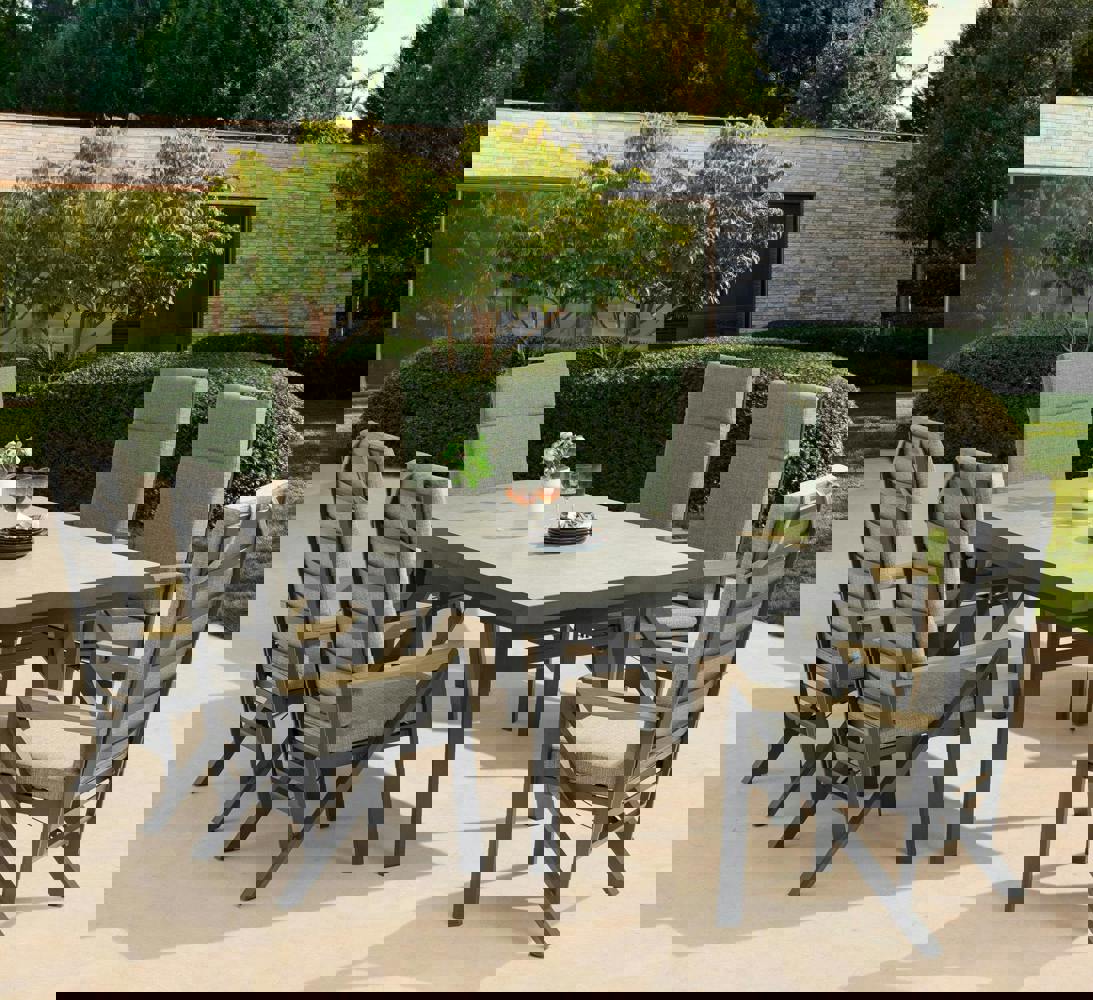 Designed for relaxed outdoor entertaining, the Glendale Darwin 6-Seater Corner Dining Set brings a confident, contemporary look to your garden. Combining the strength of aluminium with the warmth of teak wood, it creates a striking centrepiece that suits sociable meals and long, unhurried evenings outdoors.