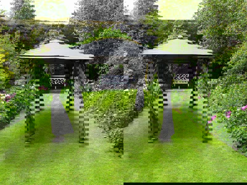 From Glendale, the Highfield Heavy Duty Garden Gazebo is a premium outdoor shelter designed for year-round use, combining a robust steel frame with a waterproof canopy and full curtains. Finished in hammered grey powder coating, it creates a considered garden feature for outdoor dining, entertaining or creating a more sheltered space on a patio, decking or paved area.