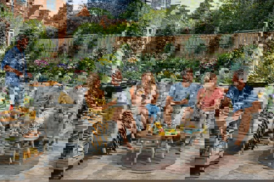 Clean, contemporary lines give the Larissa a refined look that suits modern outdoor spaces, while the plush, weather-resistant cushions bring everyday comfort. A durable aluminium frame keeps the set lightweight and low maintenance, with rust-resistant performance intended to stand up to the British seasons.