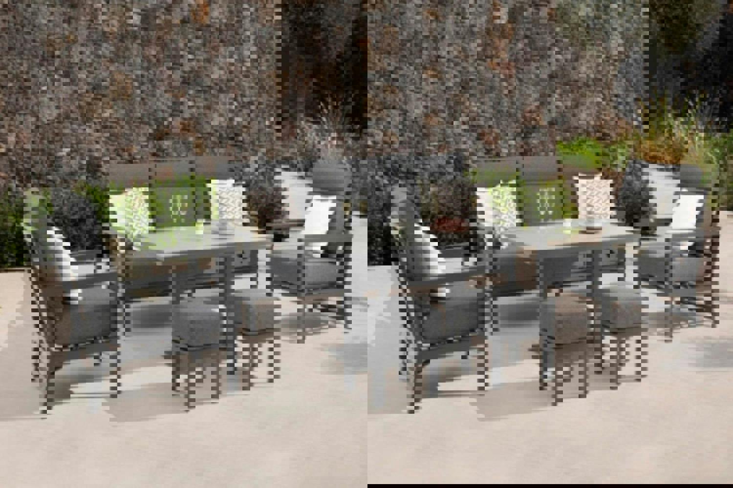 Designed for relaxed outdoor entertaining, the Glendale Rosario 5 Seater Garden Dining Set brings a contemporary look to patios, gardens and conservatories. A sleek black aluminium frame is paired with charcoal grey cushions, creating a refined finish that suits modern spaces and easygoing gatherings alike.