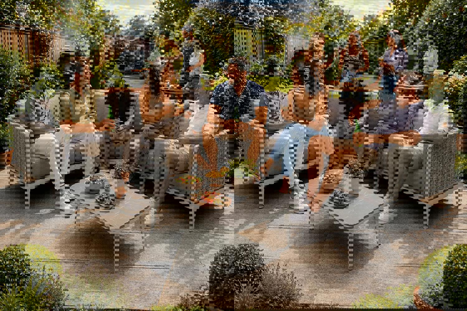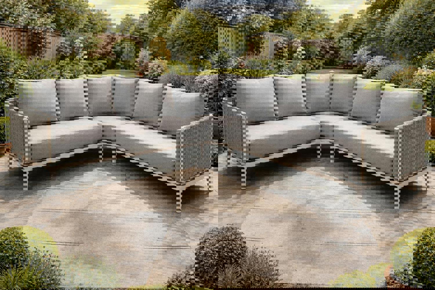 Designed to bring a considered, contemporary feel to outdoor seating, the Glendale Sienna Corner Sofa is an L-shaped corner sofa set created for relaxed entertaining in the garden or on the patio. Its clean-lined profile is softened by teak wood accents, offering a balanced look that suits modern outdoor spaces while still feeling warm and inviting.