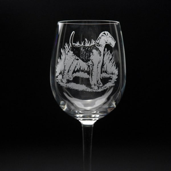 This Airedale Terrier Crystal Wine Glass is hand-etched with a stunning design of a Airedale Terrier, making it the perfect gift for Airedale Terrier lovers.