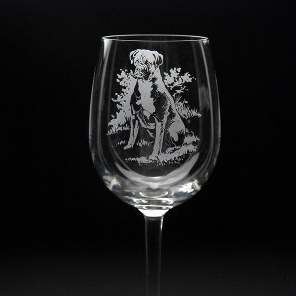 This Boxer Crystal Wine Glass is hand-etched with a stunning design of a Boxer, making it the perfect gift for Boxer lovers.