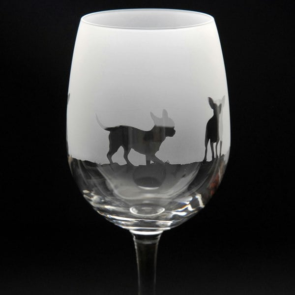 This Chihuahua Crystal Wine Glass is hand-etched with a stunning design of a Chihuahua, making it the perfect gift for Chihuahua lovers.