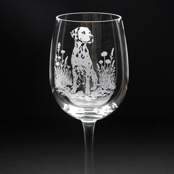 This Dalmatian Crystal Wine Glass is hand-etched with a stunning design of a Dalmatian, making it the perfect gift for Dalmatian lovers.
