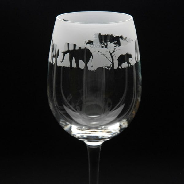 This Elephant Crystal Wine Glass is hand-etched with a stunning design of a Elephant, making it the perfect gift for Elephant lovers.