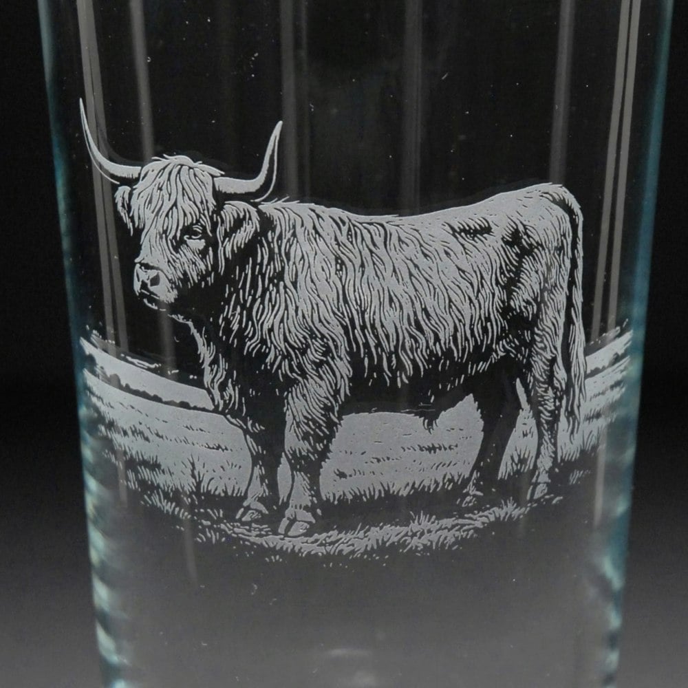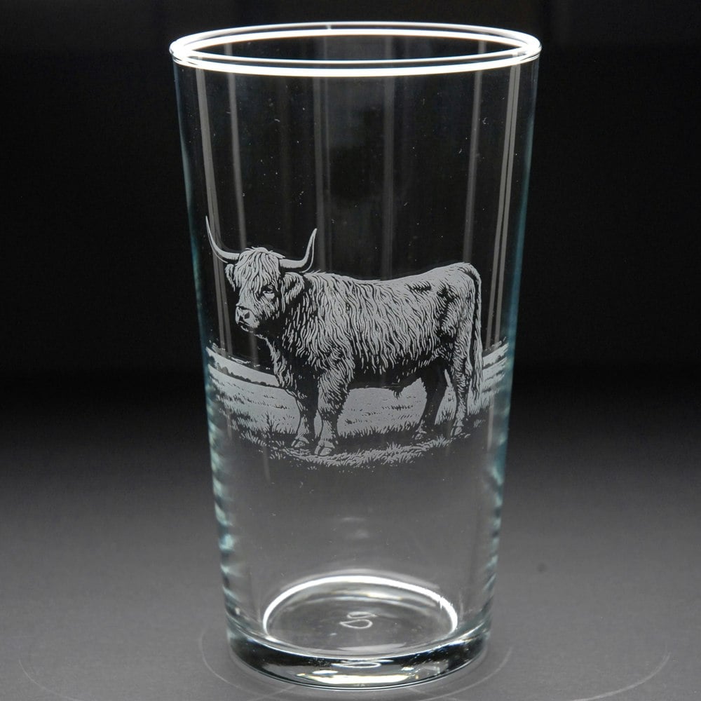 This Highland Cow Pint Glass is hand-etched with a stunning design of a Highland Cow, making it the perfect gift for Highland Cow lovers.