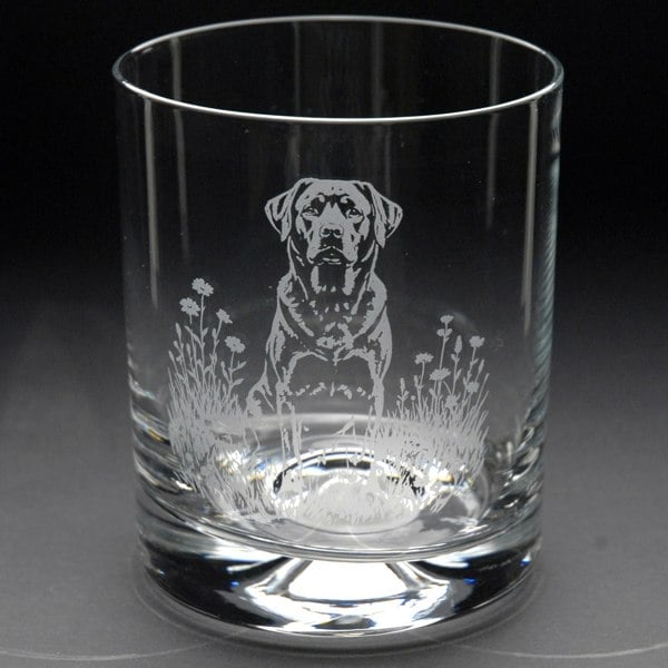 This Labrador Whiskey Tumbler Glass is hand-etched with a stunning design of a Labrador, making it the perfect gift for Labrador lovers.