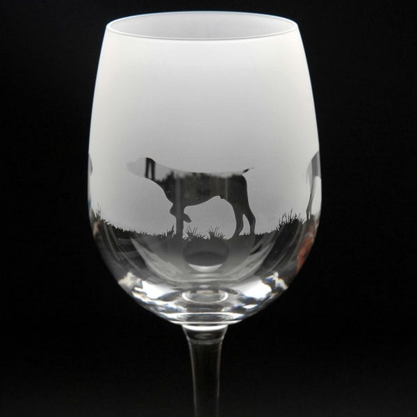 This Pointer Crystal Wine Glass is hand-etched with a stunning design of a Pointer, making it the perfect gift for Pointer lovers.
