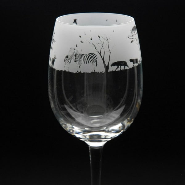 This Safari Crystal Wine Glass is hand-etched with a stunning design of a Safari, making it the perfect gift for Safari lovers.